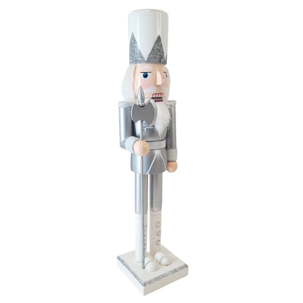 Cascanueces línea plateada de 38 cm – Elegancia y tradición en tu decoración navideña