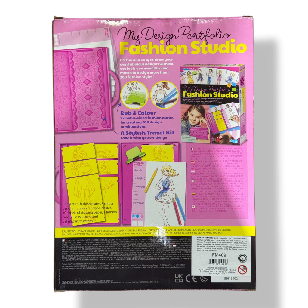 Con más de 200 combinaciones posibles, el Estudio de Moda estimula la imaginación y permite crear looks únicos una y otra vez. Además, viene en un práctico estuche portátil, ideal para llevar a todos lados y diseñar en cualquier momento.